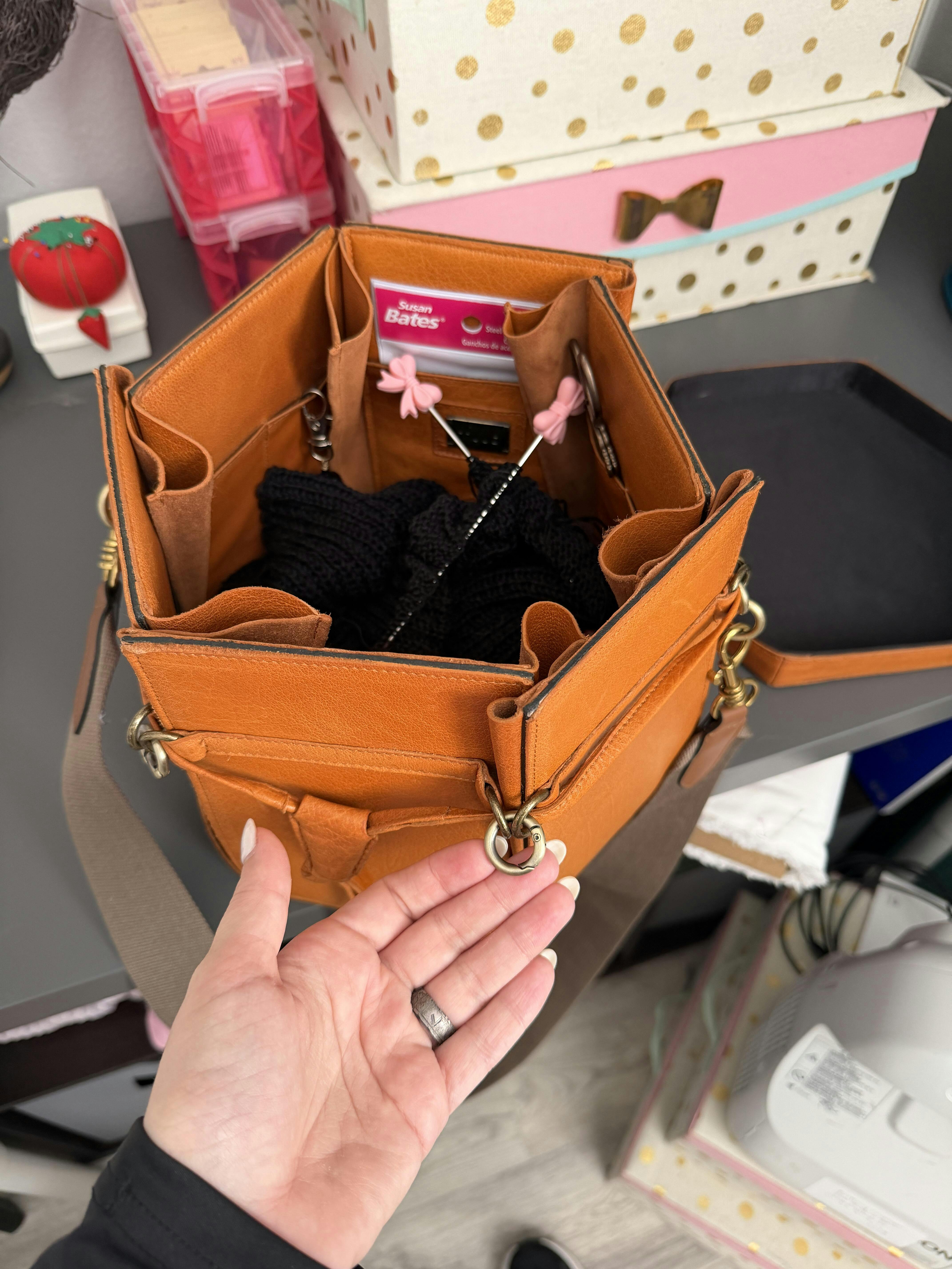 Gorgeous leather project box to keep all your accessories and works in progress. I used mine on a crosscountry roadtrip while moving from Montana to Kentucky and it kept everything contained and in its place from stop to stop.